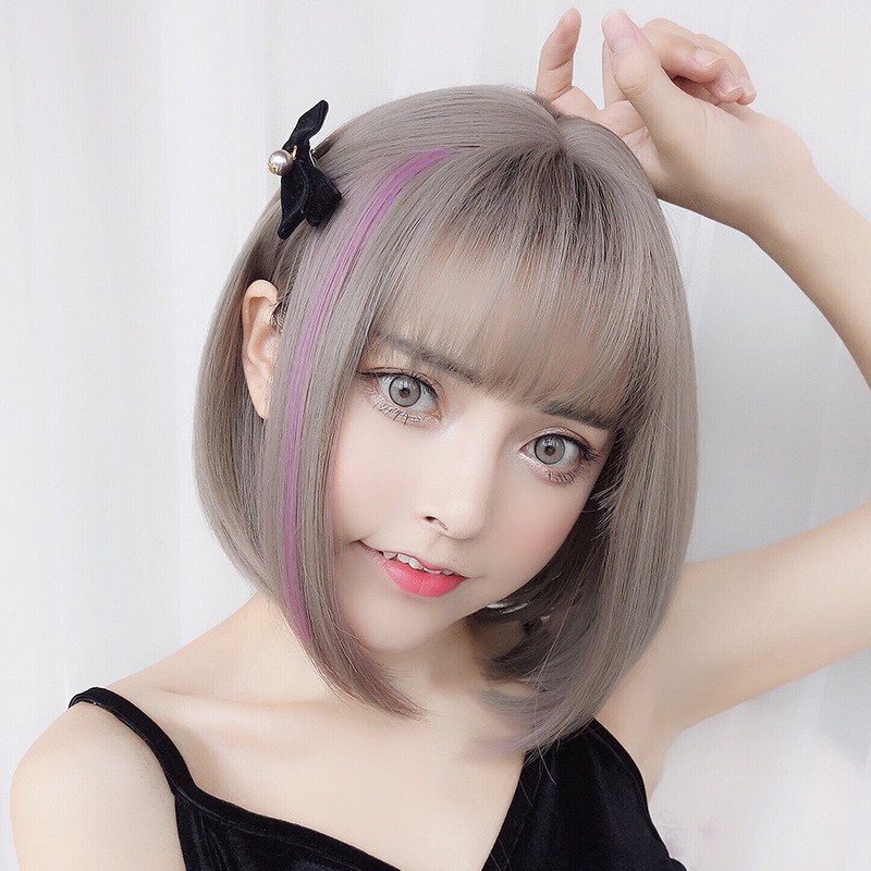 Wig Rambut Palsu Pendek Poni Natural Ala Korea Ukuran L M Untuk