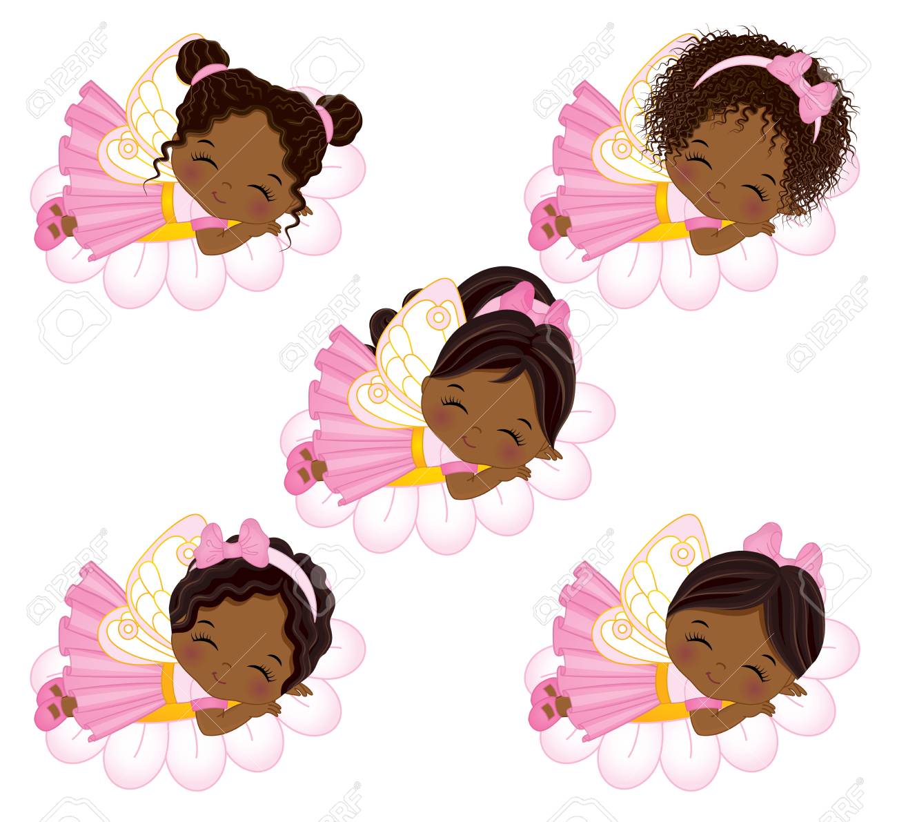 Vector Cute Little African American Fairies With Various