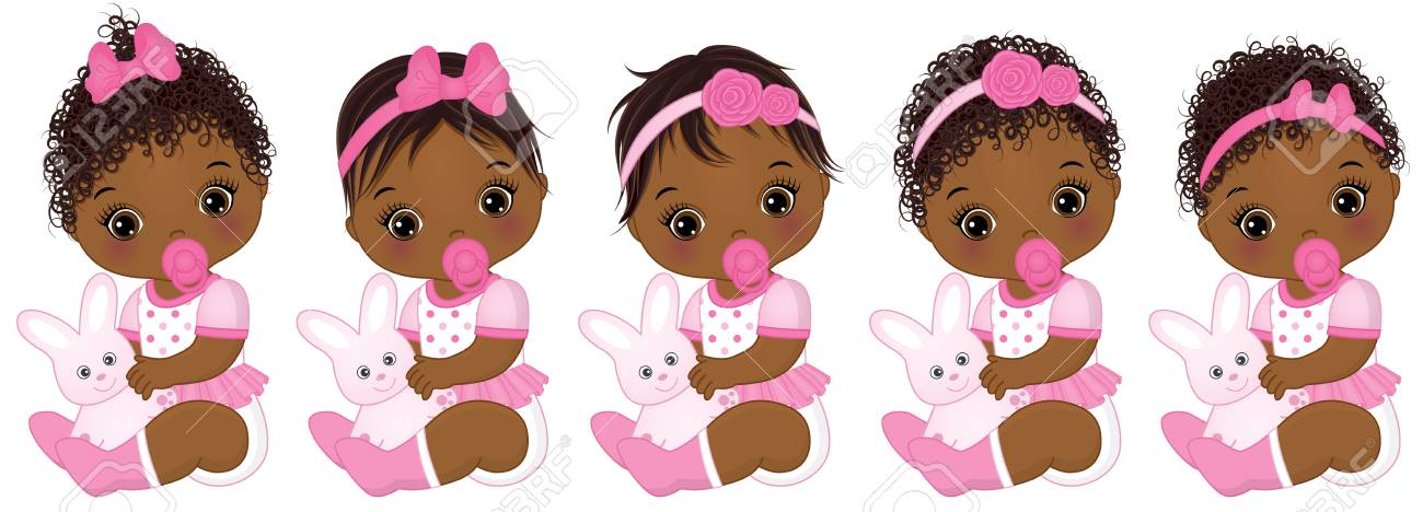 Vector Cute African American Baby Girls With Toy Bunnies Vector