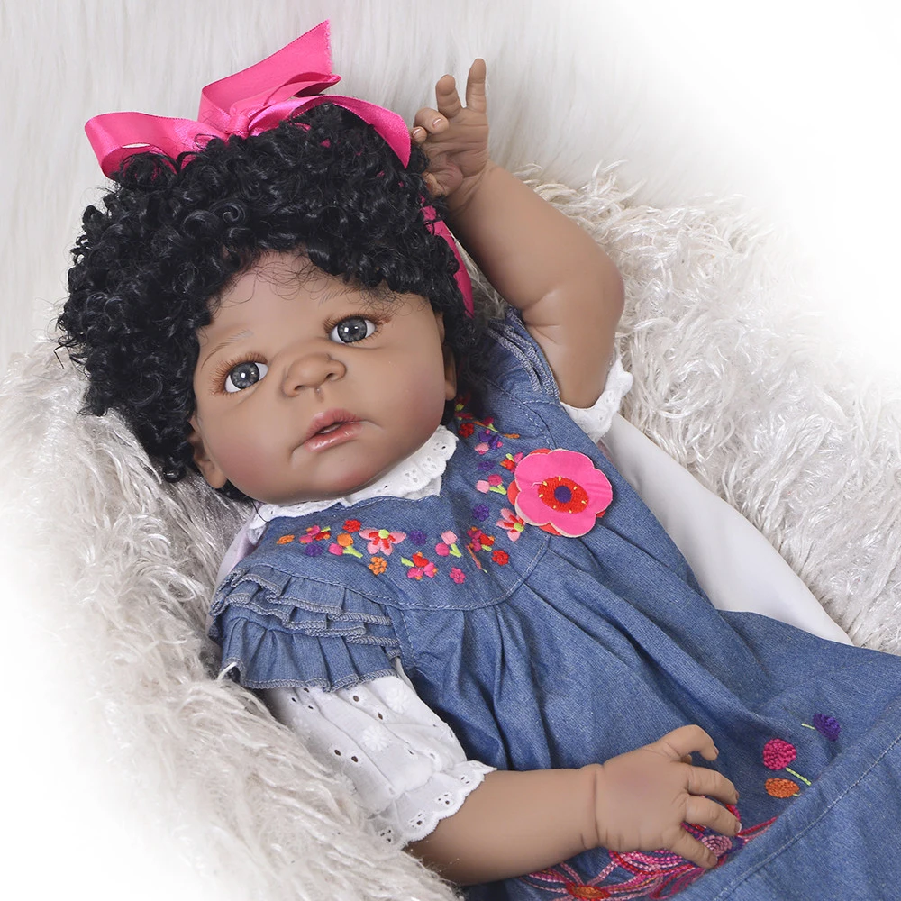 56cm Full Body Silicone Reborn Baby Doll Toy 22inch Black Skin